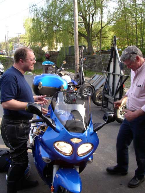 Alex Gifford the owner of Branchville motors explaining that these new fangled bikes don't have a choke. I can deal with that! |