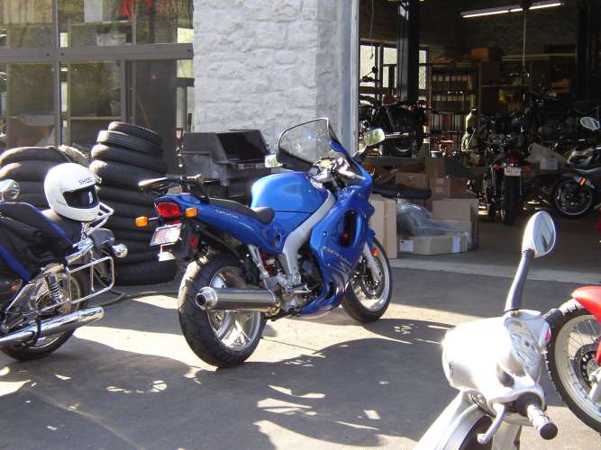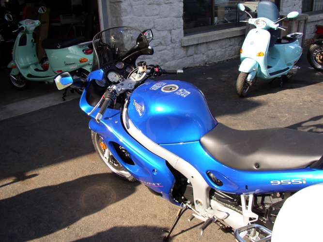 I arrive at Branchville Motors to pick up my new Triumph Sprint ST. I see it sitting at the back door so without talking to anyone I go over and check it out.